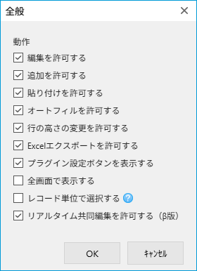リアルタイム共同編集を使用するにはリボンエリアの「シート」タブの「全般」から「リアルタイム共同編集を許可する」をチェックします。